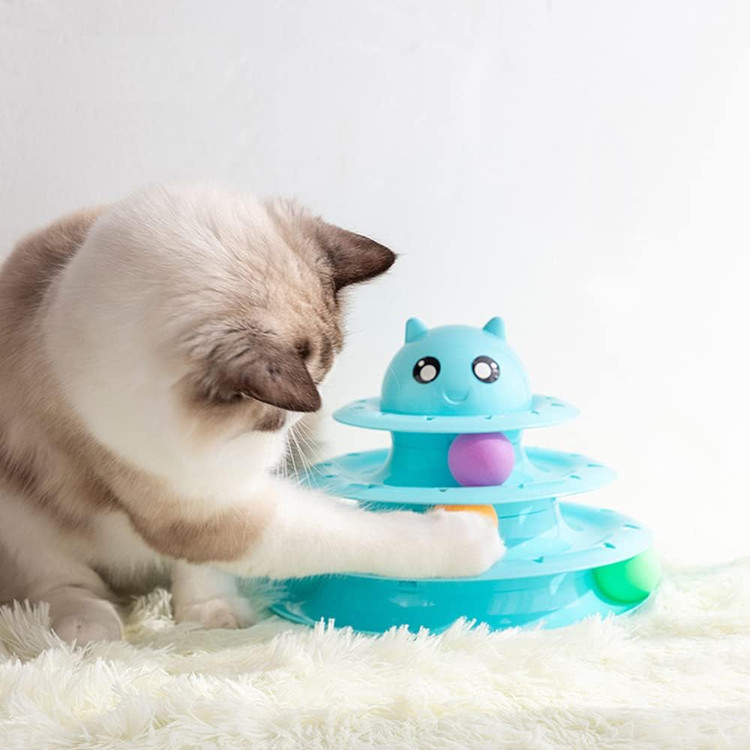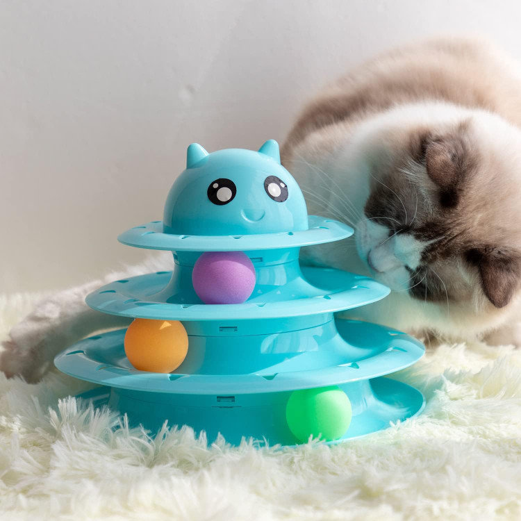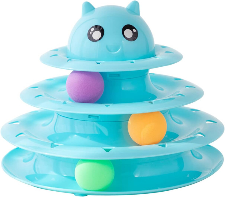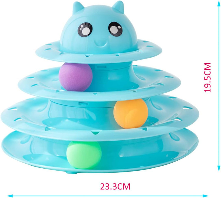 این اسباب بازی از سه لاین تشکیل شده است و هر لاین دارای یک توپ رنگی است که توجه گربه ها را به خود جلب می کند و برای بازی چندین گربه بسیار مناسب است. توپ چرخان در مسیر حواس و غریزه شکار گربه را تحریک می کند. گربه می تواند به تنهایی بازی کند و خستگی و افسردگی گربه را از بین ببرد.