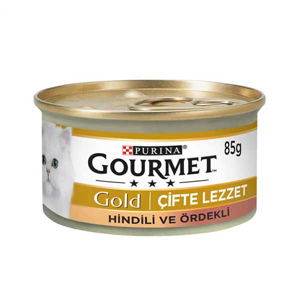 کنسرو گربه گورمه گلد با گوشت بوقلمون و اردک (Gourmet Gold Turkey-Duck) وزن 85 گرم تهیه شده بصورت پته بوده و عطر و طعم منحصر به فردی که دارد در جذب حتی بدغذاترین گربه های نیز موفق بوده است. کنسرو گربه گرومه با گوشت بوقلمون و اردک را می توان برای تمامی گربه های بالغ از هر نژادی که هستند مورد استفاده قرار داد. کنسرو گربه گرومه یک وعده غذایی کامل و مغذی تهیه شده به صورت تکه ایی است که فاقد هر گونه نگهدارنده و طعم دهنده شیمیایی است.