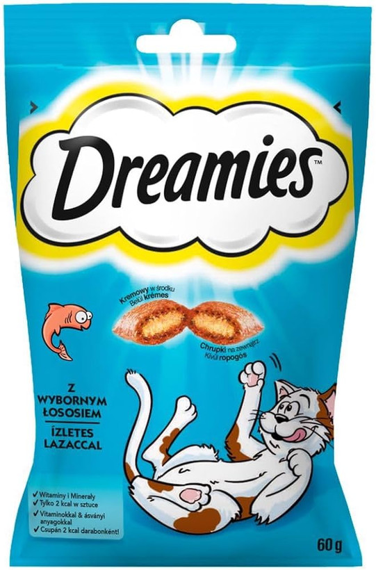 تشویقی گربه DREAMIES™ مملو از چیزهای خوشمزه ایی است که گربه ها دوست دارند. لحظاتی را با دوست گربه خود با این خوراکیهای بالشتکی به طرز اغواکنندهای ترد ونرم به اشتراک بگذارید. DREAMIES™ با طعم ماهی سالمون لذیذ حاوی ویتامین ها و مواد معدنی است که گربه شما تنها 2 کالری از هر دانه تشویقی دریافت می کند. پس هر چه سریع تر بسته تشویقی را تکان دهید و گربه خود را تماشا کنید که در حال دویدن به سمت شما است!